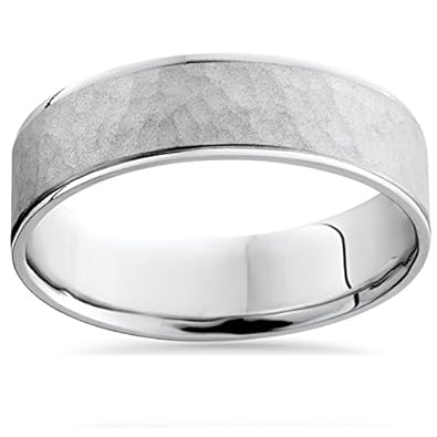 Hammered white gold mens wedding rings